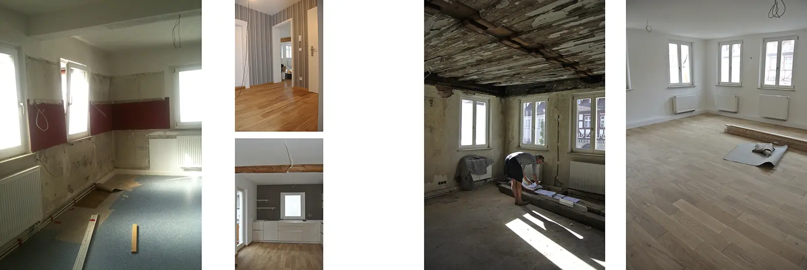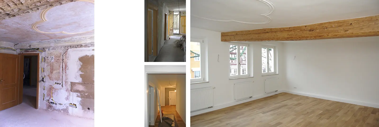Durch sensible Sofortmaßnahmen am Tragwerk und im Umgang mit der Bausubstanz wird Wohnraum geschaffen, der den Charme der historischen Baukultur mit dem Wohnkomfort der heutigen Zeit sachlich miteinander verbindet.