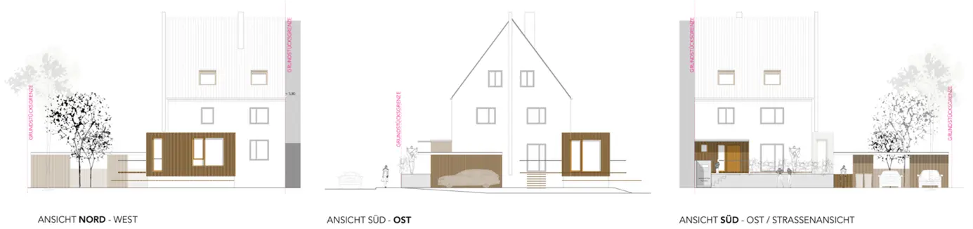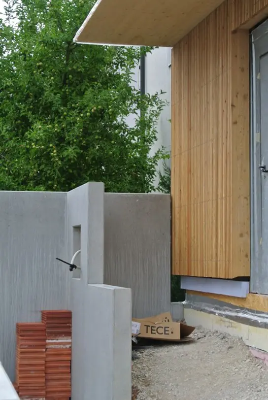 Das Haus erfährt so eine definierte Abgrenzung zur Straße mit einer privaten Vorzone.