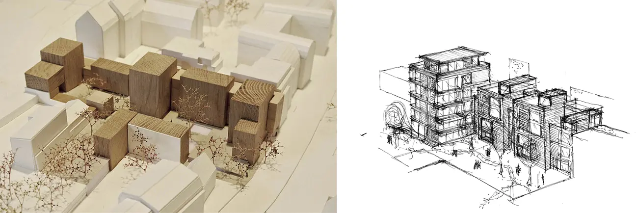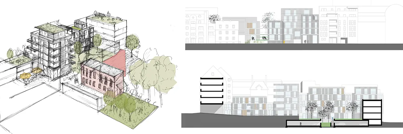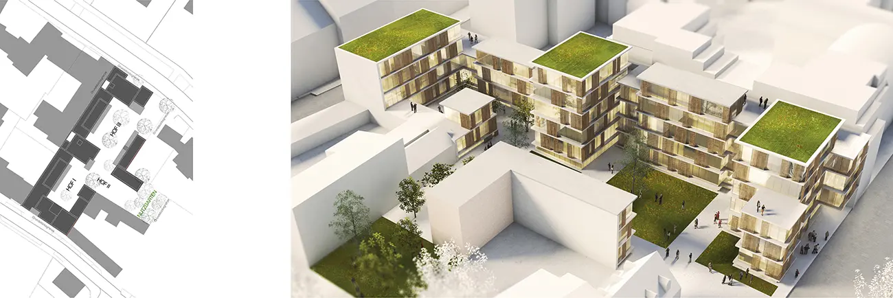 Auf dem Grundstück einer ehemaligen Spiegelfabrik möchte eine Baugruppe gemeinschaftliches Wohnen realisieren. Neben vielfältigen Wohnformen werden diversen Gemeinschaftseinrichtungen wie ein Stadtteilcafe, eine Boulderhalle und Gemeinschaftsräumen sowie ein umfassendes Fahrradstellplatzkonzept und eine Tiefgarage geplant.
