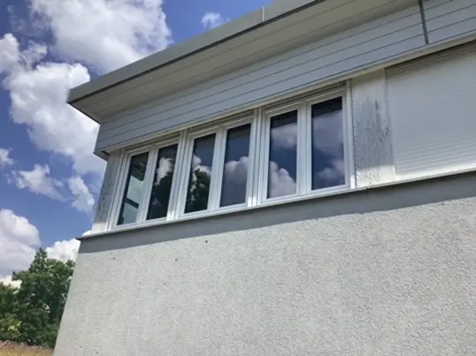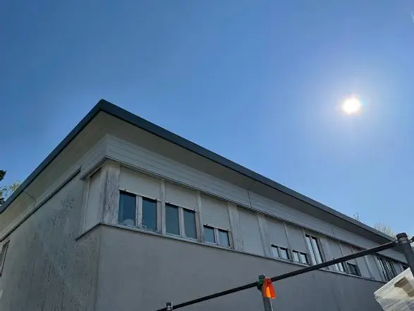 Ein Teil der preisgekrönten Anlage sozialen Wohnungsbaus, in den 1990er Jahren vom Evangelischen Siedlungswerk erbaut, erfährt eine Flachdachsanierung samt energetischer Ertüchtigung.
