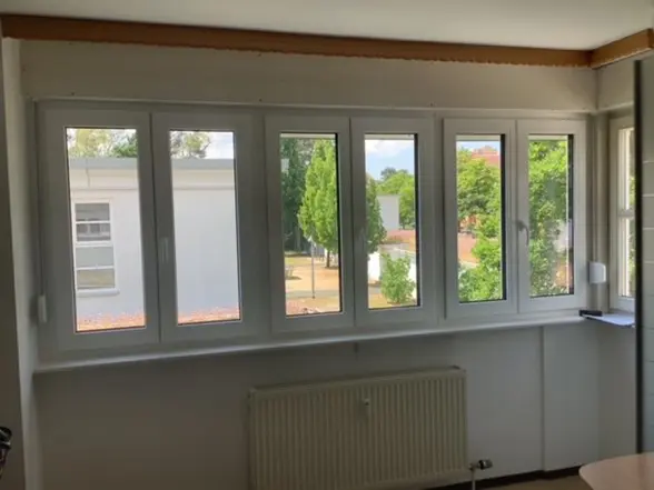 Fenstertausch mit Maßnahmen zur Erfüllung des Lüftungskonzepts von 3 Stadthausreihen und einem Kopfbau in bewohntem Zustand.