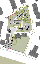 Die Anzahl der Häuser umfasst 6 Geschosswohnungsbauten verbunden über eine gemeinsame Erschließung. zzgl. gewerbliche Nutzung in Bestandsgebäude / Neubau im südlichen Bereich des Grundstücks entlang der Zufahrt.