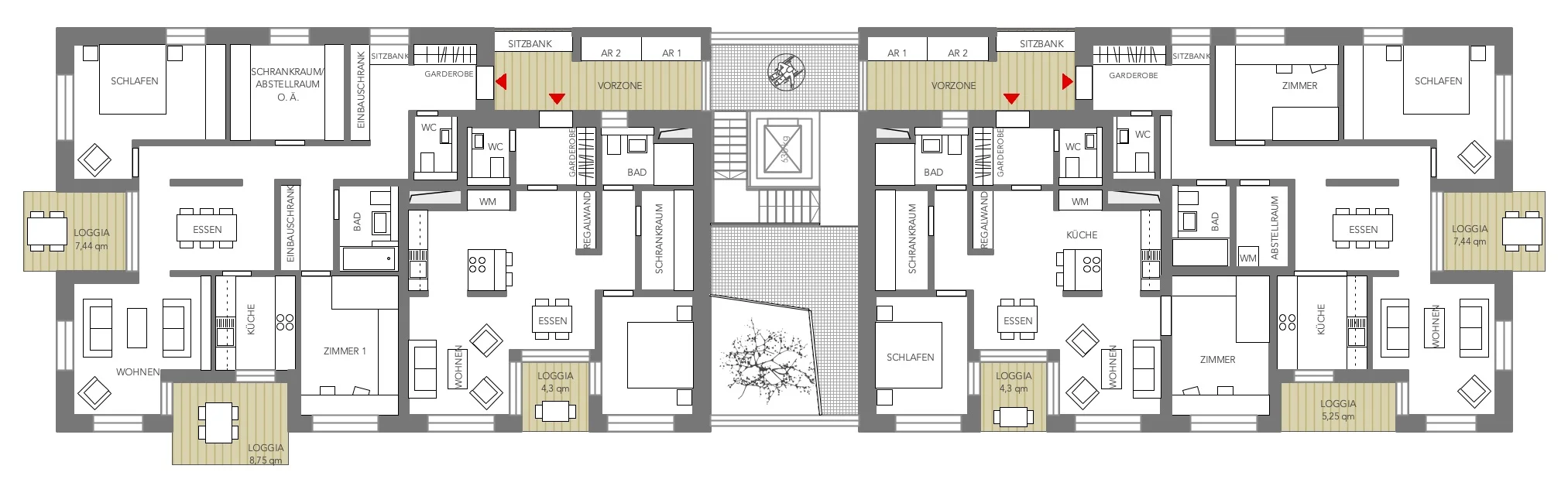 Die Wohnungen selbst sind in verschiedenen Ausprägungen angelegt und werden individuell für die Bewohner geplant.