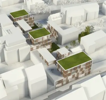 Auf dem Grundstück einer ehemaligen Spiegelfabrik möchte eine Baugruppe gemeinschaftliches Wohnen realisieren. Neben vielfältigen Wohnformen werden diversen Gemeinschaftseinrichtungen wie ein Stadtteilcafe, eine Boulderhalle und Gemeinschaftsräumen sowie ein umfassendes Fahrradstellplatzkonzept und eine Tiefgarage geplant.