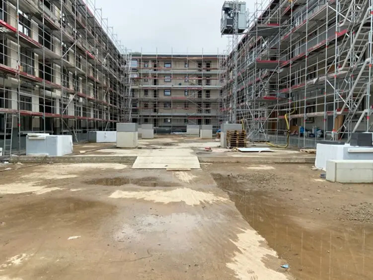 Der Rohbau fand während der Corona – Pandemie statt. Durch strikte Einhaltung der BG Bau Vorschriften und zusätzlichen Maßnahmen wie einer Zugangskontrolle konnten die Bauarbeiten ununterbrochen fortgesetzt werden.