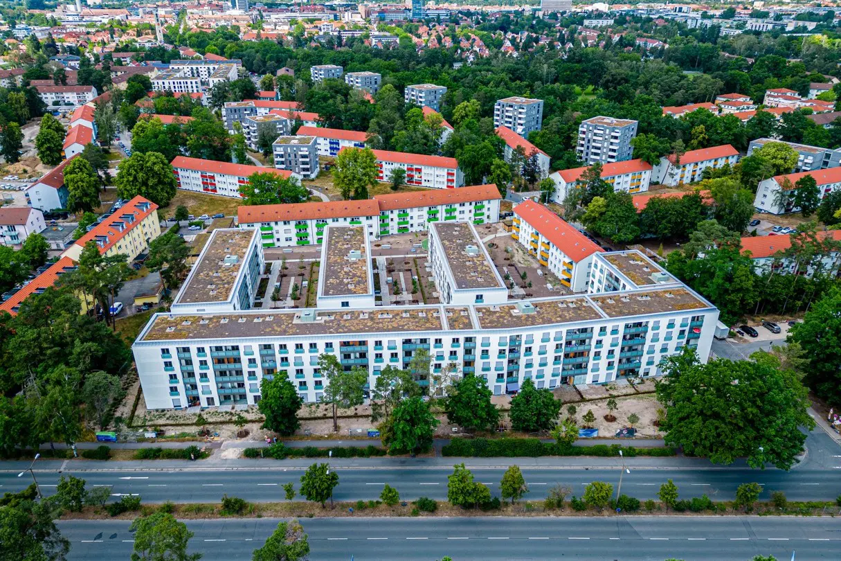 Im Zuge der Nachverdichtung eines großen Wohnquartiers aus den 50er Jahren wird ein Baufeld freigemacht für den Neubau von 168 Wohneinheiten. Hierfür werden 3 Gebäuderiegel mit 48 Wohneinheiten entmietet und abgerissen; die Neubauten werden in direkter Nachbarschaft zu Bestandsgebäuden errichtet.